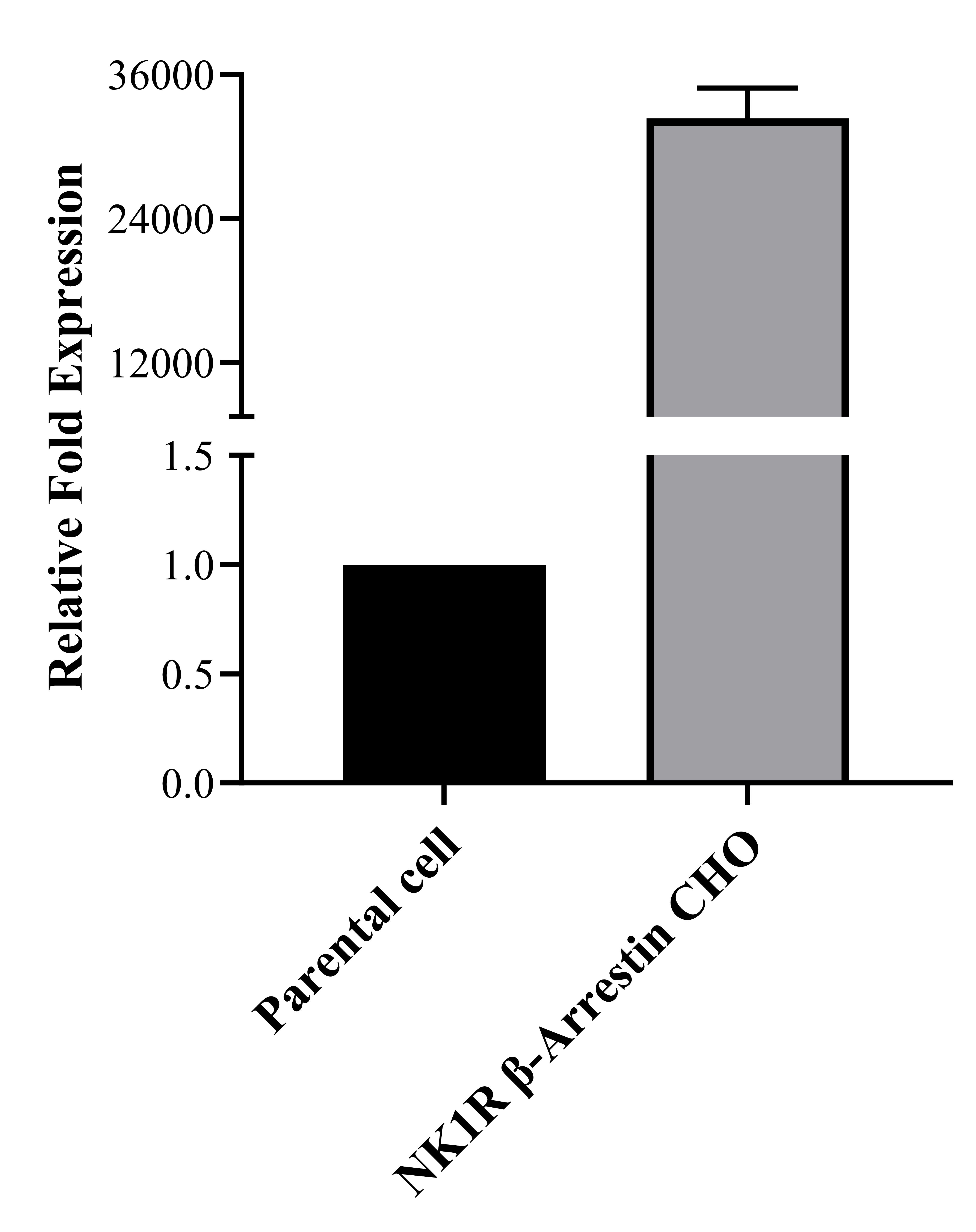 NK1R β-Arrestin CHO 報告基因藥靶模型很好的模擬了體內(nèi) NK1R/β-Arrestin 的信號轉(zhuǎn) 導(dǎo)過程,原理見下圖所示。當(dāng)缺乏配體刺激時,β-Arrestin 不與 NK1R 結(jié)合,融合β-Arrestin的熒光素酶處于失活構(gòu)象,當(dāng) NK1R 遭遇配體刺激時,融合熒光素酶報告基因的β-Arrestin 被招募,使熒光素酶報告基因處于激活狀態(tài),加入其底物后發(fā)光信號增強(qiáng)。![]() Figure 1. NK1R β-Arrestin CHO 細(xì)胞模型原理圖 |