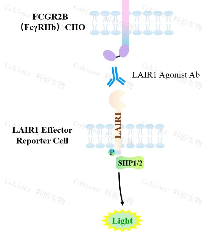LAIR1 Effector Reporter Cell 報告基因藥靶模型很好的模擬了體內 LAIR1 的信號轉導過程,原理見下圖所示。![]() Figure 1.LAIR1 Effector Reporter Cell 細胞模型原理圖 |