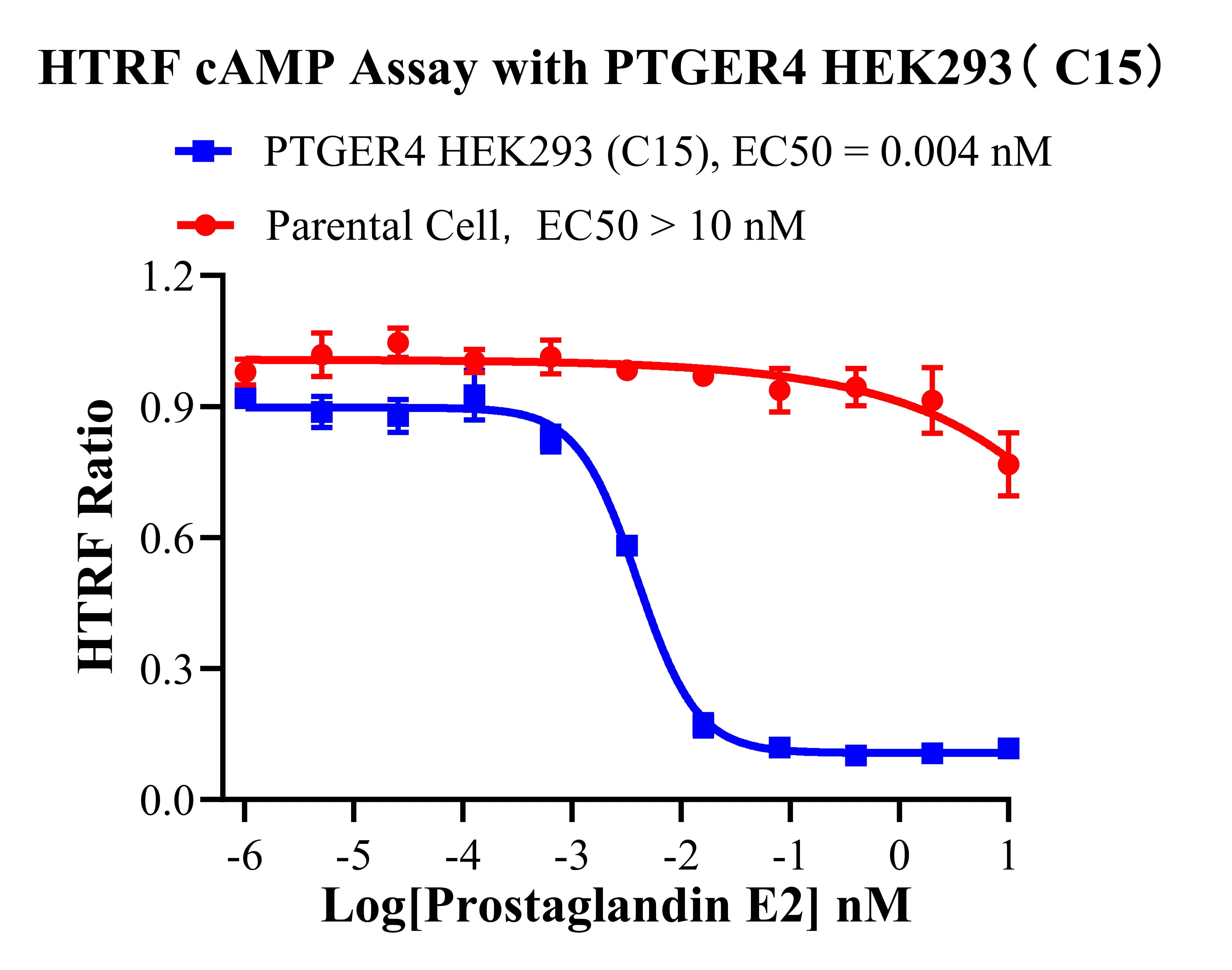 PTGER4 HEK293 細(xì)胞藥靶模型很好的模擬了體內(nèi) PTGER4 的信號轉(zhuǎn)導(dǎo)過程,原理見下圖所示。