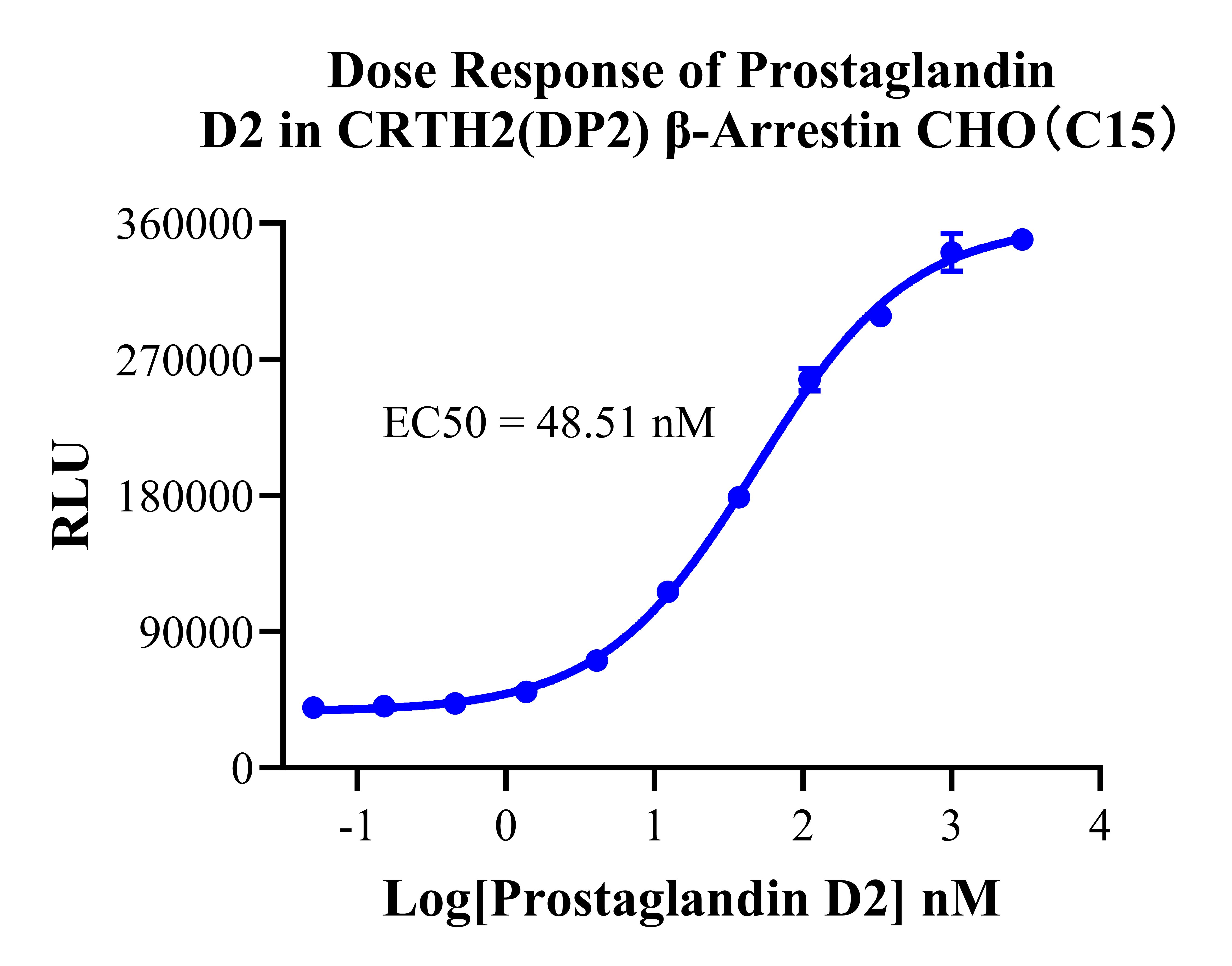CRTH2(DP2) β-Arrestin CHO 報(bào)告基因藥靶模型很好的模擬了體內(nèi) CRTH2(DP2)/β- Arrestin 的信號(hào)轉(zhuǎn)導(dǎo)過程, 原理見下圖所示。 當(dāng)缺乏配體刺激時(shí) , β-Arrestin 不與 CRTH2(DP2)結(jié)合,融合β-Arrestin 的熒光素酶處于失活構(gòu)象,當(dāng) CRTH2(DP2)遭遇配體刺 激時(shí),融合熒光素酶報(bào)告基因的β-Arrestin 被招募,使熒光素酶報(bào)告基因處于激活狀態(tài),加 入其底物后發(fā)光信號(hào)增強(qiáng)。![]() Figure 1. CRTH2(DP2) β-Arrestin CHO 細(xì)胞模型原理圖 |