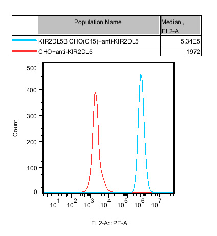 KIR2DL5B CHO 細(xì)胞, 在 CHO-K1 細(xì)胞的基礎(chǔ)上 ,穩(wěn)定表達(dá)人 KIR2DL5B。 | |