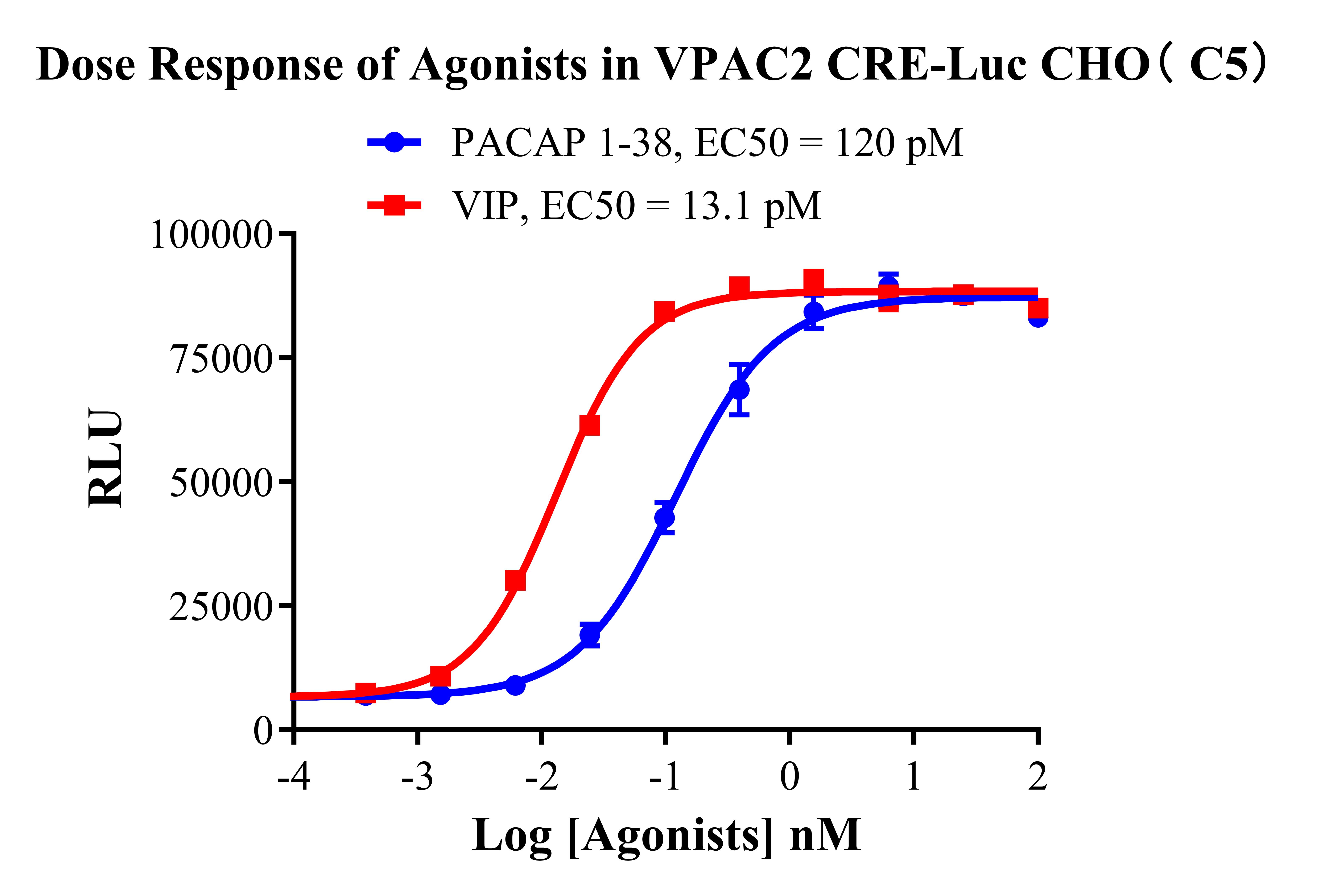 V. Representative Data![]() Figure 1. Recombinant VPAC2 CRE-Luc CHO stably expressing VPAC2. ![]() Figure 2. Dose Response of Agonists in VPAC2 CRE-Luc CHO(C5). ![]() Figure 3.Inhibition of PACAP 1-38 induced Reporter Activity by PACAP38 Neutralization Ab in VPAC2 CRE-Luc CHO(C5). |