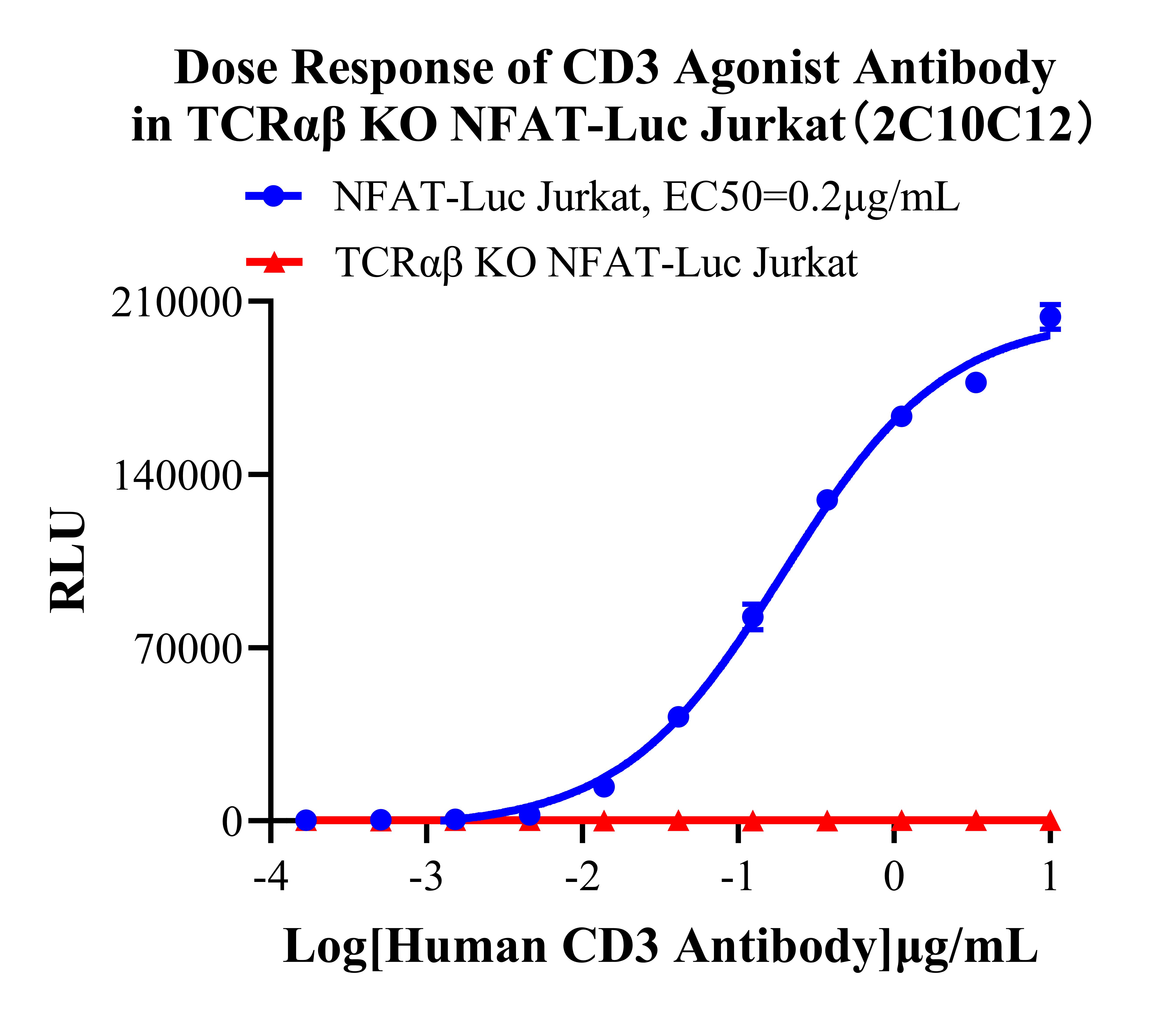 ![]() Figure 2. WB of TCRαβ KO NFAT-Luc Jurkat. ![]() Figure 3. Dose Response of CD3 Agonist Antibody in TCRαβ KO NFAT-Luc Jurkat(2C10C12). |